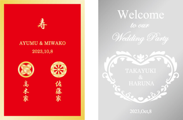 イラストや新郎新婦のお名前、日時を入れたオリジナルのウェルカムボードを作ってみませんか。